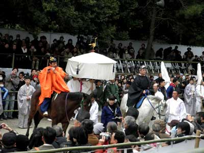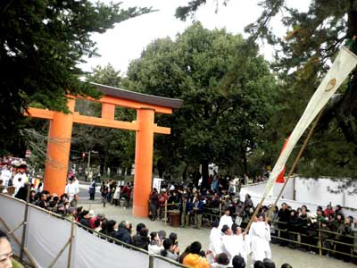 今年はこれを沿道の人の頭越しに眺めつつ、早々に『影向の松』のところに向かい、『松の下式』を拝見する事と致しました。