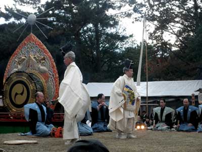 ここで行われる『神楽式』とは、簡単に言いますと翁と三番叟です。