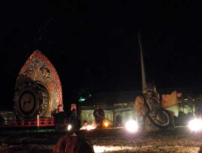 17日の始まりと供に若宮社を出た御子神様は、神職らに先導されて暗い中を御旅所に入ります。
