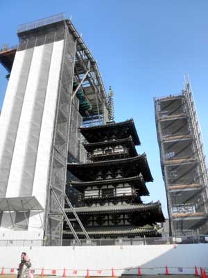 この後、来年の三月で塔全体を覆う形になり、この中で解体修理が行われる予定です。