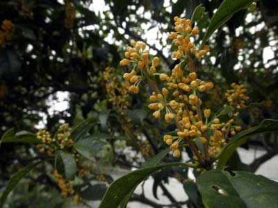 この後雨が降り出して、今日は気温が下がり気味なので、まだ完全には開花していないと思いますが、これからあちらこちらで、この香りがただよう事でしょう。