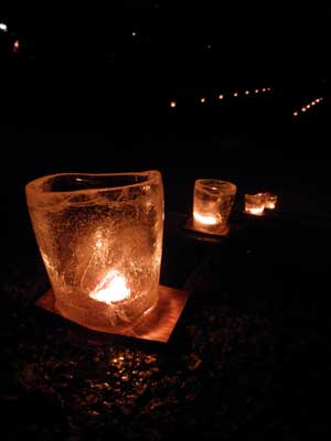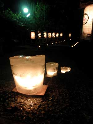 「今年も無事、お祭を終える事が出来ました」と、宮司さんや氏子の方々と御礼を言い合って境内から出る頃には、灯された『氷献灯』もかなり溶けて、氷の容器も薄くなっていて、更に透明感が増して綺麗な光を見せてくれました。