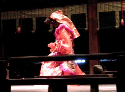 それはともかく、かつて例大祭には興福寺の南門前に御旅所が設けられ、この舞はそちらで行われたのですが、交通事情などによって今では境内の舞殿で行うようになったという事です。