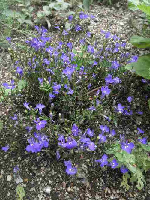 とにかくヒョロヒョロと花茎が伸びて、鮮やかな水色の花が次々と咲き続けています。