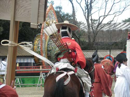 そして昼間には、夜に行われる神遊(かみあそび)に奉仕する芸能者たちが、威儀を正してお旅所へと詣でます。この風流(ふりゅう)行列が御渡り式です。