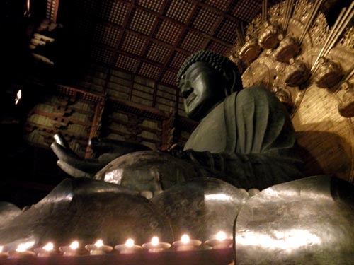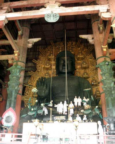 それを脇に見ながら回廊の途中にある門から入って大仏殿に向かえば、スリッパに履き替えて上にお上がり下さいとの事。