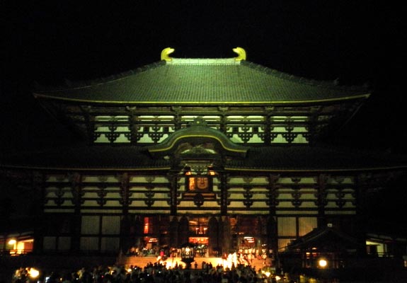 この日から15日まで、大仏殿の夜間拝観の日、受付の始まる18時30分には、19時からの一般拝観を待つ人の列が既に中門前にでき始めていました。