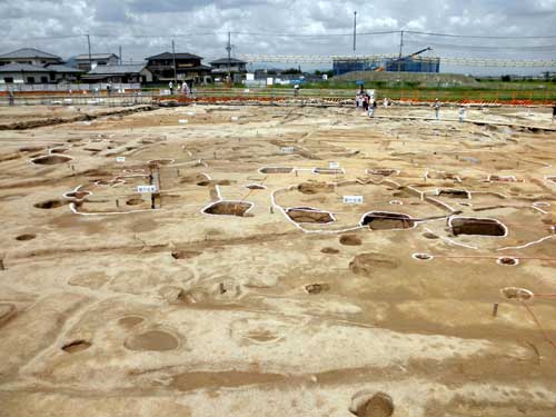 平安時代以降より最近まで、この周辺は農耕地として利用され続け、土地の上面もかなり削られているようで、住居跡の残りはあまり良くありませんが、最も大きな竪穴式住居は一辺が9メートルもあるそうで、これはこれでかなりグレードが高そうです。