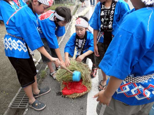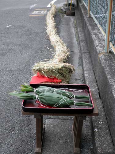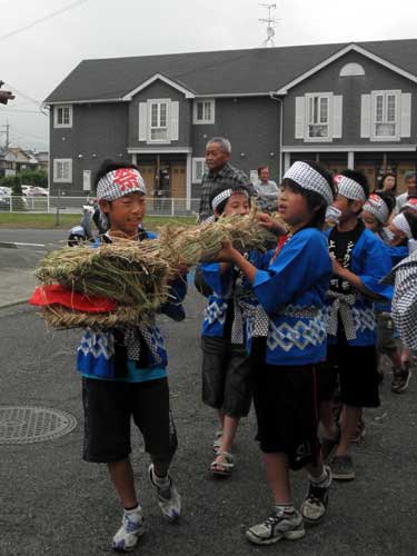 午後四時からは、はっぴ姿の小学生の男の子達がこの蛇を担いで地区内を練りまわすのですが、今年は人数も少なく、小さな子供も多いせいか距離をかなり短くしたようです。