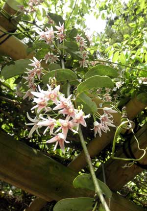 画像は相変わらず内容とは全く関係なく、五月の初めに咲いていたムベの花です。
