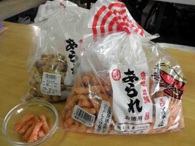 実はこちらのあられ、委託販売をしているお店もチョコチョコあるようなので、私は尺土駅近く、スーパーマーケットの並びにあるパン屋さんで買って来る事が多いです。