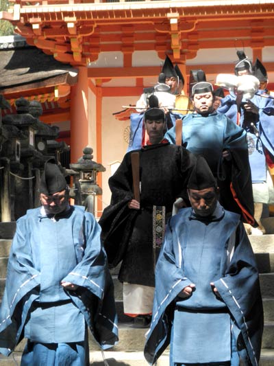 この画像の黒い束帯の方が、今年の勅使、掌典の唐橋在倫氏です。