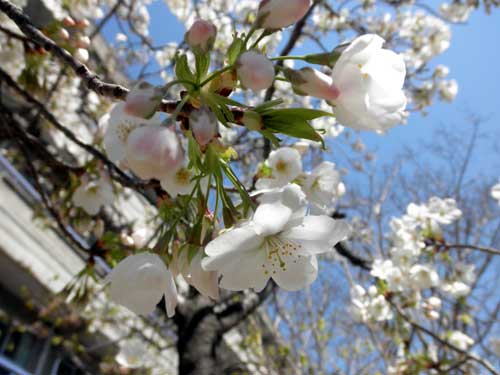 月曜日の今日、江戸彼岸や薄墨桜、早咲きの枝垂れは大方散ってしまったようですが、染井吉野や大島桜はまだ咲き残って、白山桜はこれから見頃を迎えます。