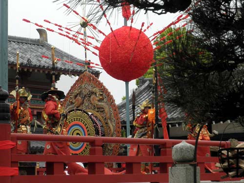 聖霊会にはなくてはならない舞の一つで、天王寺では左右の楽人が演奏を受け持ちますから、とにかく賑やかと申しますか面白いです。