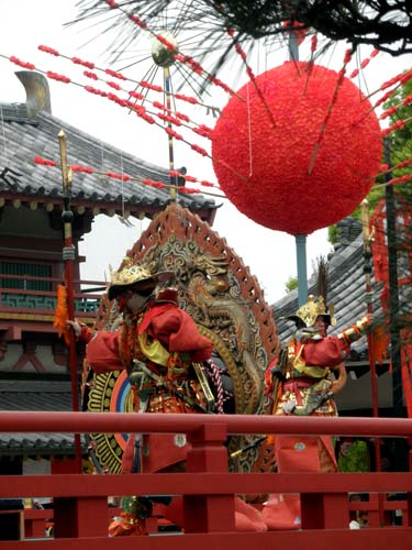 唄匿(ばいのく)、散華の後に一旦、舞台を降り、替わって右方の舞楽が演じられます。