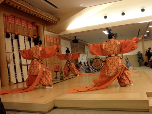 現在では午後4時くらいなので明るいのですが、昔は太平楽が演じられる頃には暗くなっていたという事です。