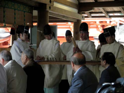 こうしてすべての法要と舞が終わると、日は西門の石の鳥居方向に傾いています。