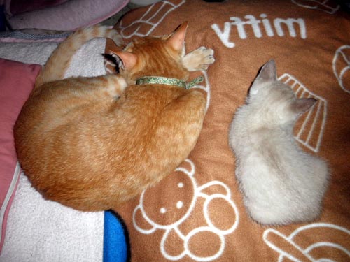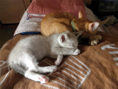 若い雄猫は案外、子猫好きが多いとの事で、良いベビーシッターになってくれました。
