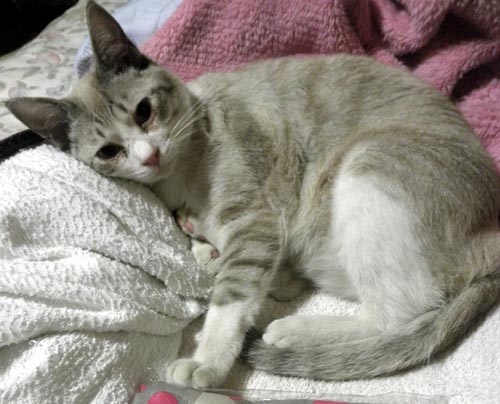 犬を二匹飼っているので、猫はチョットと困っていたので私が引き取る事になりました。