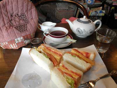 私はいつも同じパターン、ポットの紅茶とサンドウィッチにケーキをたのんでいます。