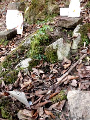 この三叉路にも、少し分かりにくいですが石の道標が立てられています。