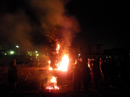 小正月の行事で、私の田舎では15日の早朝に行っていましたが、こちらでは14日の夜に行うようですね。