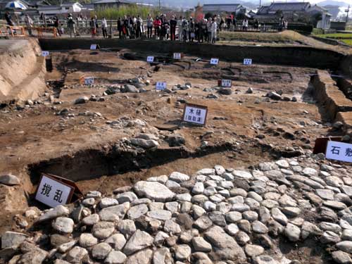 南側の石敷きは石神遺跡の石敷きと同じレベルで連続している事も確かめられたという事で、飛鳥京時代の迎賓館と思しき遺跡と水時計は、同じ時期に存在していた事も確実になったようです。