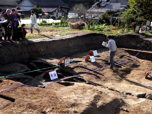 この場所、北側に展開する『石神遺跡』の南端にも隣接する場所で、ここの調査によって双方の遺跡の関係を調べる目的もあったようです。