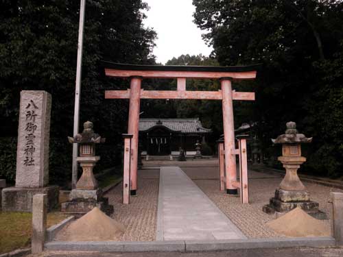 御祭神は火雷大神(菅原道真)、崇道天皇、伊予親王、藤原夫人、藤原広嗣、文室宮田麻呂、橘逸勢、吉備大臣(吉備真備)の八柱です。