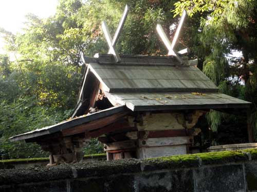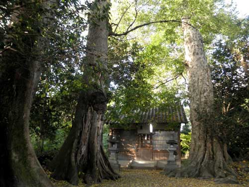 氏子の方々の立てたらしき神社の説明版や、道脇に立っている道標がなければ、この神社の名前は分からずじまいになるでしょう。