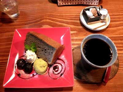 明日香村にあります『カフェことだま』のスイーツメニュー、黒ゴマと米粉のシフォンケーキ、美味です(^.^)