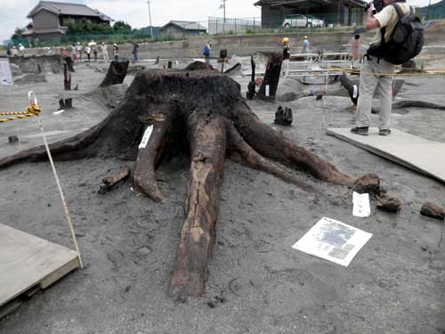 水田も雑木林も人の足跡も土器や木製品も、洪水が運んできた川砂で埋もれていました。