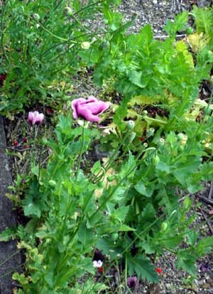 道から線路を見下ろしたところに、おなじみのオレンジ色の芥子(ナガミケシ)と一緒に咲いておりました。