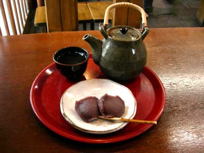 餅が二つに、温かいお茶か冷たいお茶かを選べまして300円。