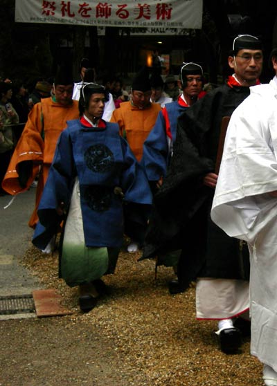 勅使は黒い装束ですから三位以上、宮司は赤い装束ですから五位か四位、そして碧や青の方々は六位以下という事になります。