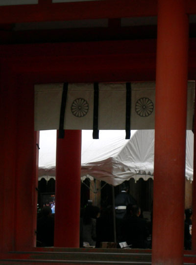 三年前にも、この場所で粘って祭事の様子を窺っていたのですが、今年は午後から京都に行く予定があったので、さっさと退散してしまいました。