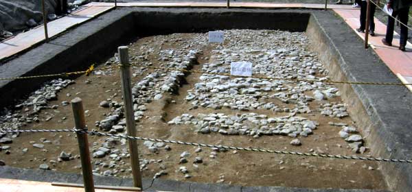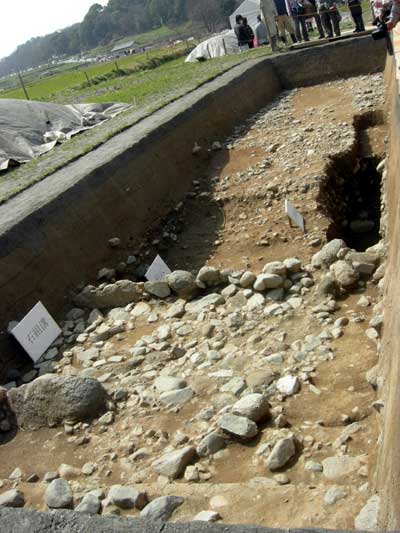 右側にボケて映っている石敷きは、昨年の6月に検出した同じ遺構です。