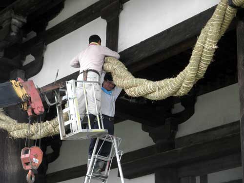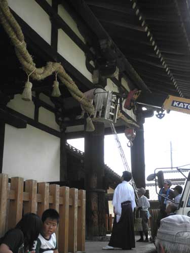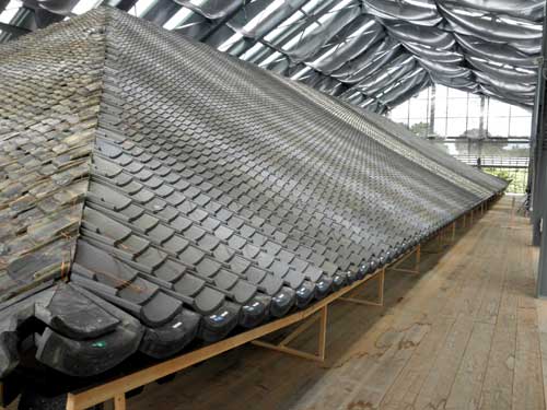 既に四回目ですが、今回は新しい瓦も焼きあがって、瓦の葺き替えが始まった状況を見せて頂きました。