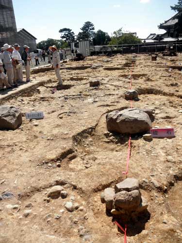 本来ならば、更に西側に『小子房』という建物も平行して建てられているはずなのですが、その礎石や抜き取り穴などは、平面での確認は出来ていないそうで、これから断ち割っての調査が続けられるとの事です。