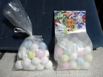 右側は『ビー玉ラムネ』という名前で、奈良市内のお土産物屋さんで売っています。