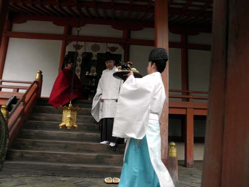 最初は東大寺の御僧侶が勤められ、氏子の方々が続きます。