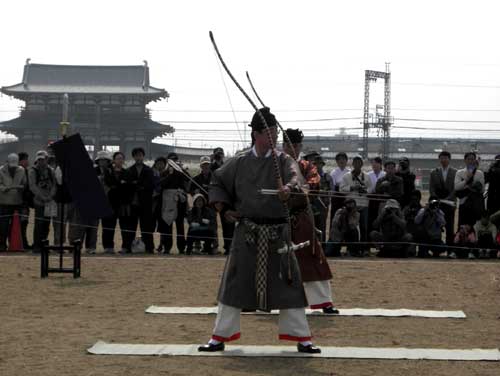 それはさて置き、本日は『射礼(じゃらい)』の再現を行なうという事で、いそいそと出かけました。