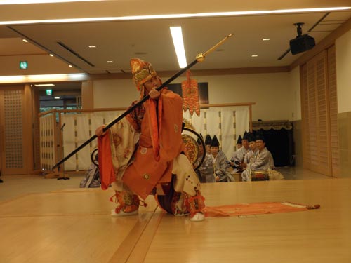 曲目は『貴徳(きとく)』、おん祭の舞楽でも恒例の右方走り舞です。